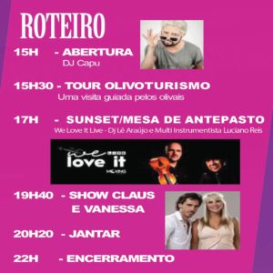 – 15:30 – Tour Experiência de Olivoturismo na Estância das Oliveiras
