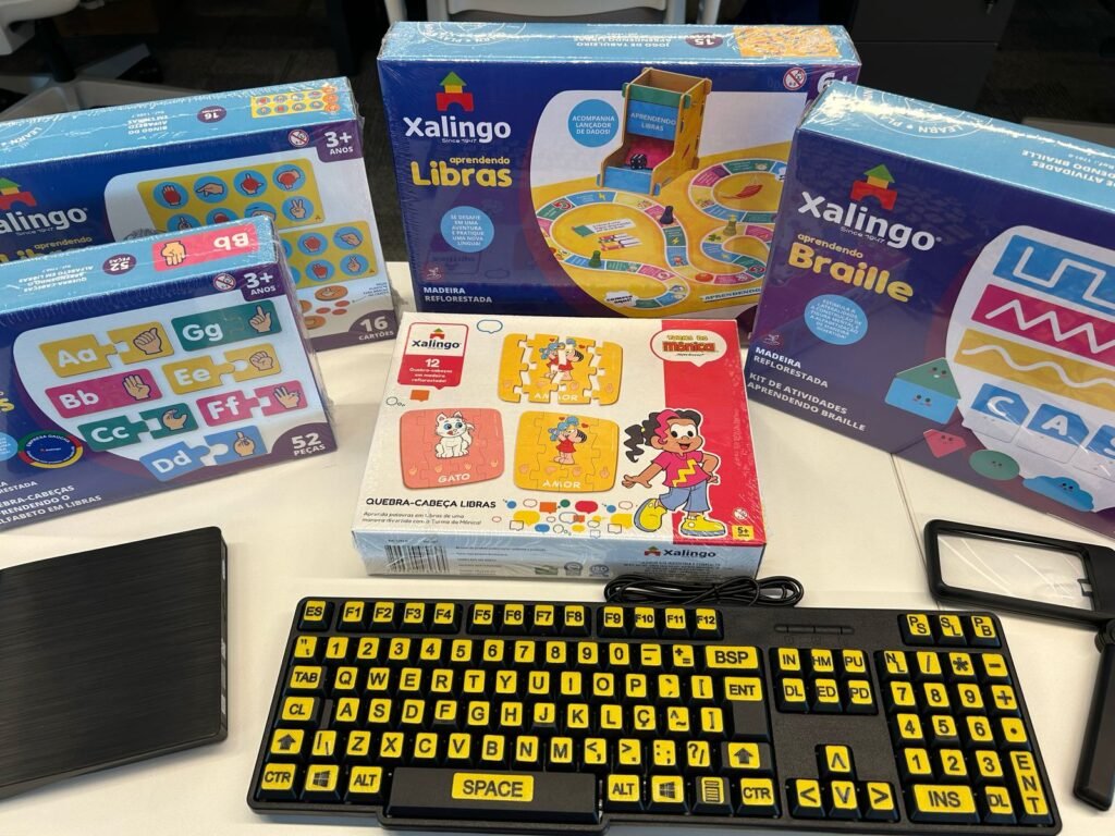 Cada kit é composto por uma série de itens que ampliam as possibilidades de interação com o universo literário: lupa para leitura de baixa visão, teclado braille com fonte aumentada, gravador/leitor de CD/DVD, além de jogos pedagógicos em braile e Libras, como um quebra-cabeças do alfabeto em Libras com personagens da Turma da Mônica, jogos de tabuleiro e um bingo em Libras. O investimento na ação teve apoio do Departamento Nacional do Sesc e da Gerência de Cultura do Sesc/RS, que contribuíram com parte dos recursos para aquisição dos materiais.